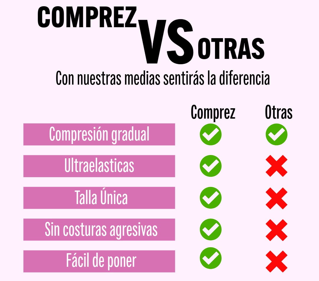 Las medias COMPREZ promueven una correcta circulación de retorno al corazón, evitando la acumulación de sangre y líquido en las piernas que generan trombos.
